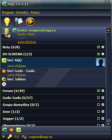Oczywiście są też dostępne dotychczasowe skórki. Wrócił też program lojalnościowy, który polega na zbieraniu punktów za używanie AQQ. Im więcej ich zbierzemy, tym wyższą rangę uzyskamy, co jest uwidocznione przy naszym profilu oraz katalogu użytkowników. Wprowadzono też kilka poprawek w kodzie, przez co aplikacja ponownie zyskała na stabilności i wydajności oraz odświeżono okno ustawień.