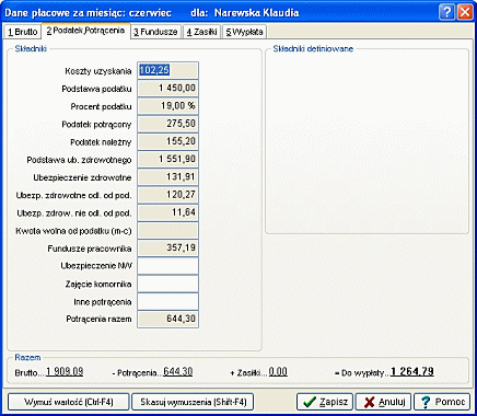 - Możliwość zdefiniowania pięciu składników do brutto oraz pięciu potrąceń.
