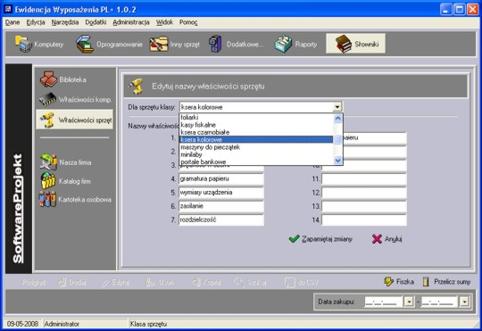 - ewidencja sprzętu komputerowego
