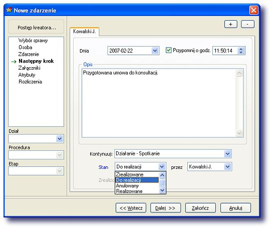 - Dołączanie do zdarzeń dokumentów elektronicznych lub papierowych (skanowanie)