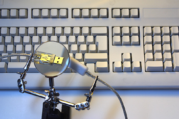 Nie zapominaj o uporządkowaniu otoczenia komputera. Każdy wystający, wiszący kabel może być ogniskiem kłopotów. Nietrudno zawadzić o jeden z nich i doprowadzić do tragedii (np. przewrócenia kubka z gorącą kawą na klawiaturę lub myszkę). Tu również najlepiej połączyć kilka kabli idących podobnym torem w jedną wiązkę i zabezpieczyć ją za pomocą taśmy, drucika, opaski lub specjalnej rurki do prowadzenia przewodów.