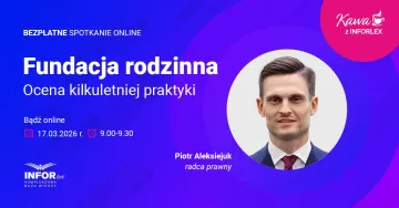 Już 17 marca 2026 r. o godz. 9:00 zapraszamy na bezpłatne wydarzenie online z cyklu Kawa z INFORLEX Fundacja rodzinna. Ocena kilkuletniej praktyki. Podczas spotkania nasz ekspert Piotr Aleksiejuk (radca prawny, Partner Zarządzający kancelarii Wojarska Aleksiejuk & Wspólnicy, Prezes Stowarzyszenia Sukcesja Firm Rodzinnych) opowie o najważniejszych doświadczeniach związanych z funkcjonowaniem fundacji rodzinnych w Polsce